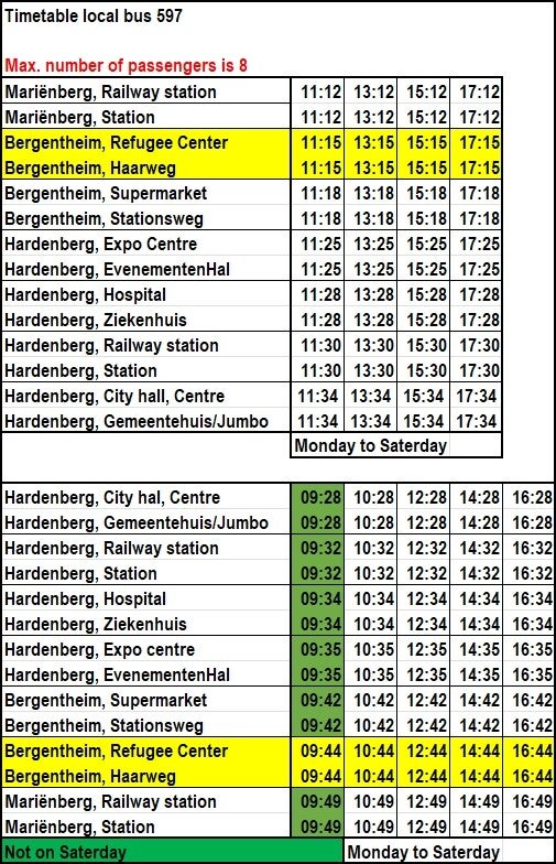 Welcome in our local bus to the railway stations Hardenberg and Mariënberg.